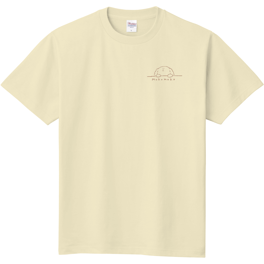 私の飼っている犬のこつぶをモチーフに作らせてもらいました!ワンポイントでシンプルなので使いやすいと思います。例えば、この白Tシャツの中に黒のトレーナーをきたら少しオシャレに