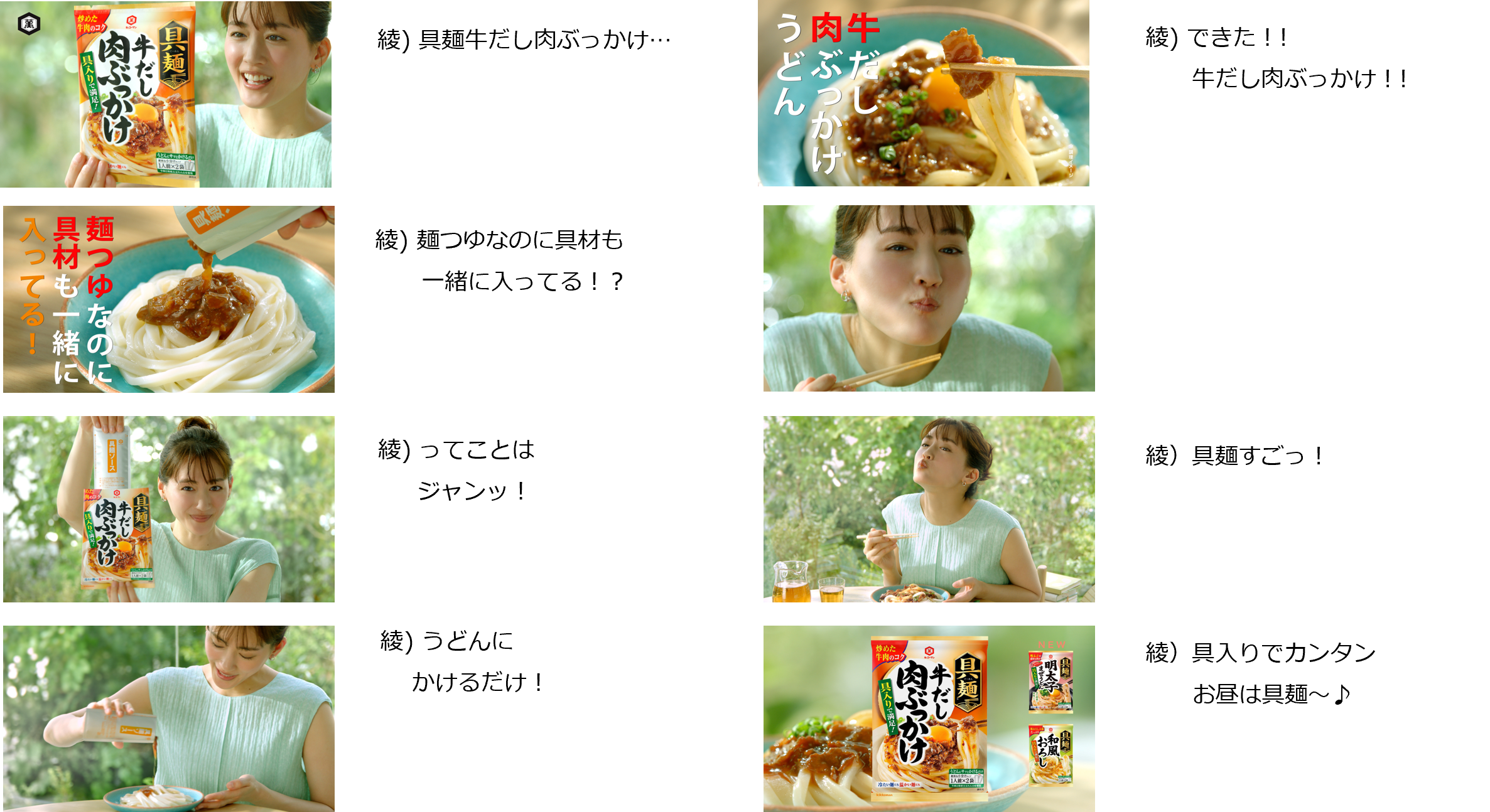 キッコーマン食品株式会社(本社:東京都港区西新橋、代表取締役社長:中野 祥三郎)は、うどんなどの麺にかけるだけで、満足感のあるメニューが出来上がる具材入りの麺つゆ「キッコーマン 具麺」シリーズの新CMを