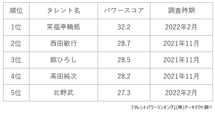 タレントパワーランキング担当:松岡