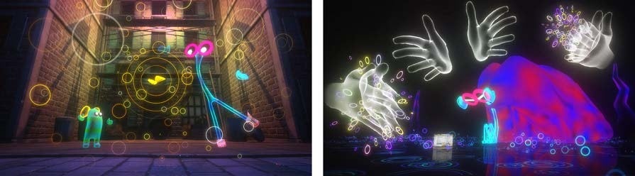 本作品は、ハンドトラッキング(※1)機能を利用し、体験者自身の両手をVR空間内で認識し、「Clap=手をたたく」というインタラクションによりストーリーが進みます。