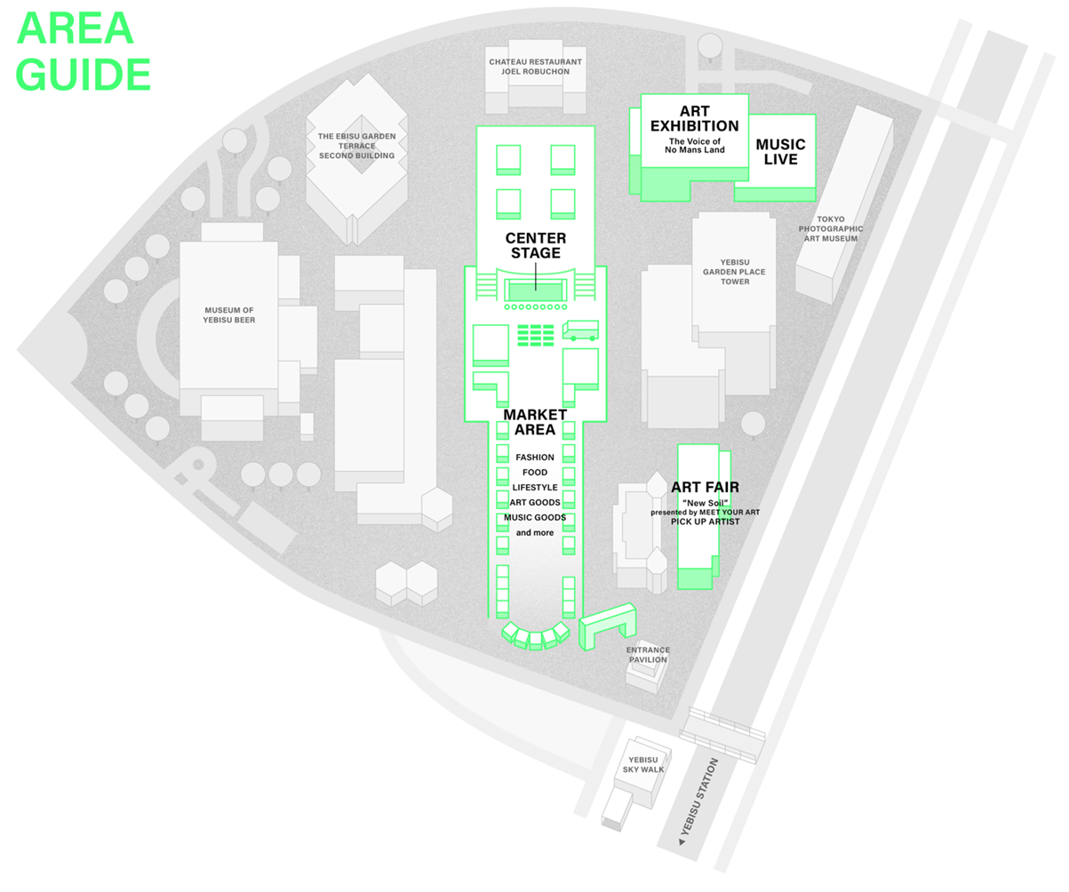 キュレーター山峰潤也が手掛け、篠田太郎、栗林隆、毛利悠子はじめ8名のアーティストが参加するART EXHIBITION「The Voice of No Mans Land」、総勢20名の新進気鋭アーティストが出展するART FAIR「”New Soil” presented by MEET YOUR ART PICK UP ARTIST」、COSMIC LAB×ミュージシャンによる一夜限りの「音楽×アート×テクノロジー」LIVE、森山未來×アーティスト「MEET YOUR ART公開収録&スペシャル対談」他ステージ上で行われる複数のセッション、広場全体に並ぶ各カルチャーやサステナブル・エシカルに根ざした50以上ものショップ&ブランドブースand more!