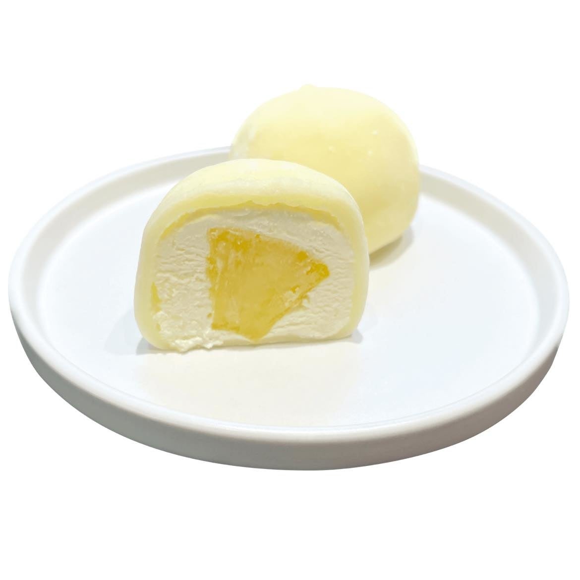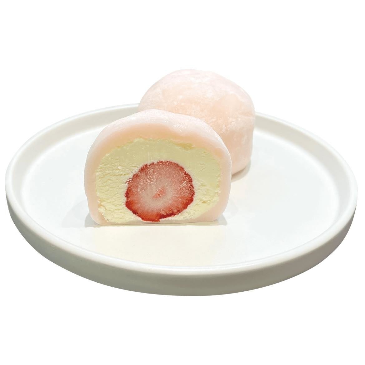 左から、パイン生クリーム大福 THE YELLOW、究極のみかんジュース THE YELLOW、いちご生クリーム大福 THE PINK、いちごミルク THE PINK