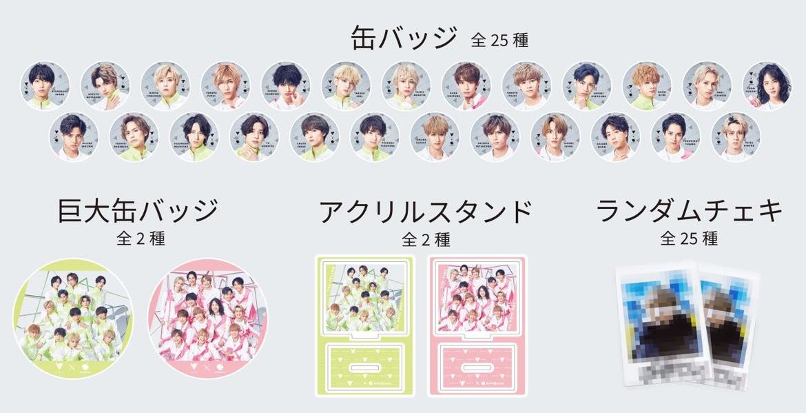 1回600円(税込)。缶バッジ(全25種)、巨大缶バッジ(全2種類)、アクリルスタンド(全2種)、ランダムチェキ(全25種)の全54種類のなかからいずれかが当たるデジタルガチャ。デジタルガチャは、専用アプリをダウンロードしていただき 、 「 YURINAN-原宿竹下通り友竹庵- 」店舗にてチェックインをすることで引けるようになります。詳細は、店舗にてご確認ください。
