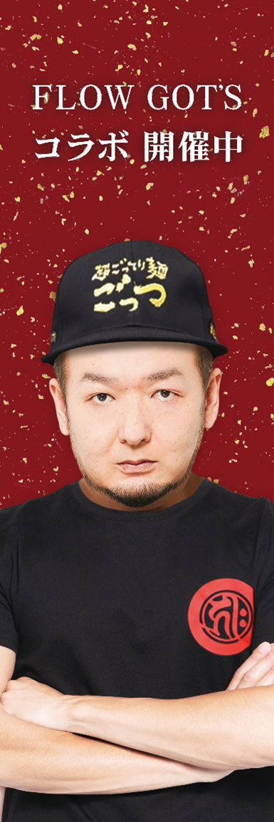 TVアニメ 『NARUTO-ナルト-』 のオープニングテーマや 『コードギアス 反逆のルルーシュ』 等のアニメ作品の主題歌を多数担当している5人組ロックバンドのFLOWが、その20周年突入イヤー記念コラボ企画 & 「GOLD」 の発売記念の一環として、ベース担当メンバーの「GOT’S」とラーメン屋 『超ごってり麺ごっつ』 とのコラボ企画“ FLOW GOT’S×超ごってり麺ごっつ “を行う。