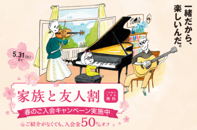 開催期間は2022年5月31日(火)までで、期間中は、どのコースも入会金が50%オフとなり、ご家族やご友人をご紹介いただくと、ご紹介いただいた方の分の入会金が無料になります。