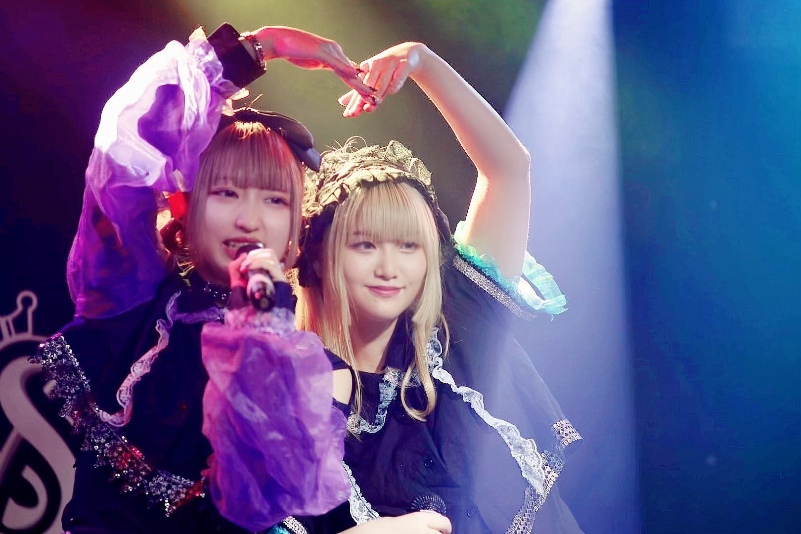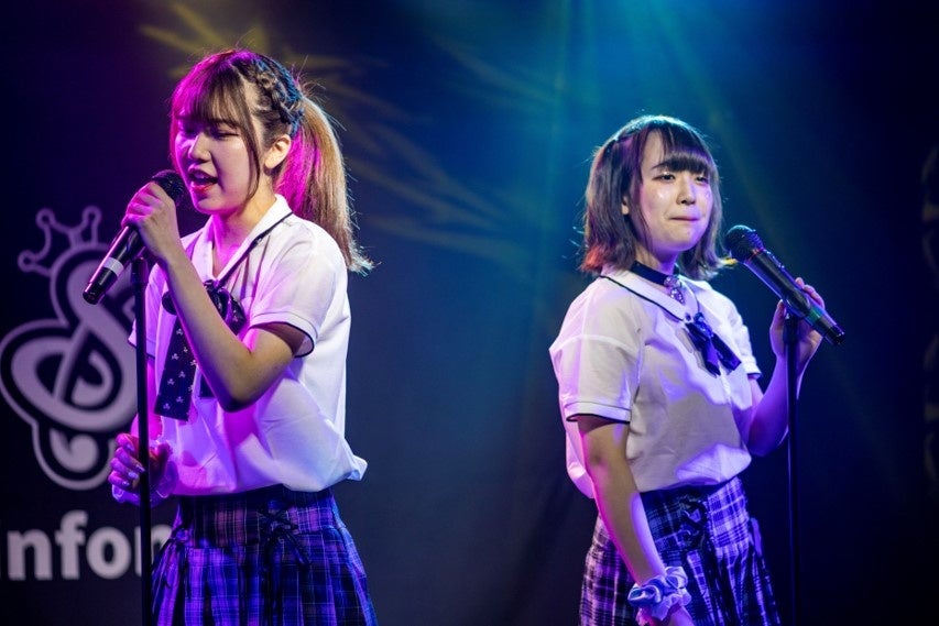 クラウンティアラからは、5月に卒業を発表しているえみり(https://twitter.com/emiri_CT)と今回唯一の男装枠・らく(https://twitter.com/raku_crown_)のユニットが登場。男女コンビだからこそのアニソンを歌唱。イケメンボイスと艶やかボイスの共演や、MC中にらくがバク転を見せる一面もあり、会場をおおいに盛り上げた。