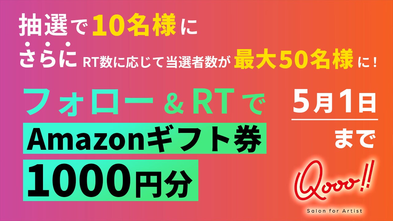 ・2022年4月25日(月)〜5月1日(日)の期間中、Qooo!!公式Twitterアカウントをフォロー&対象ツイートをRTした方に、抽選で10名×1,000円分のAmazonギフト券をプレゼント!