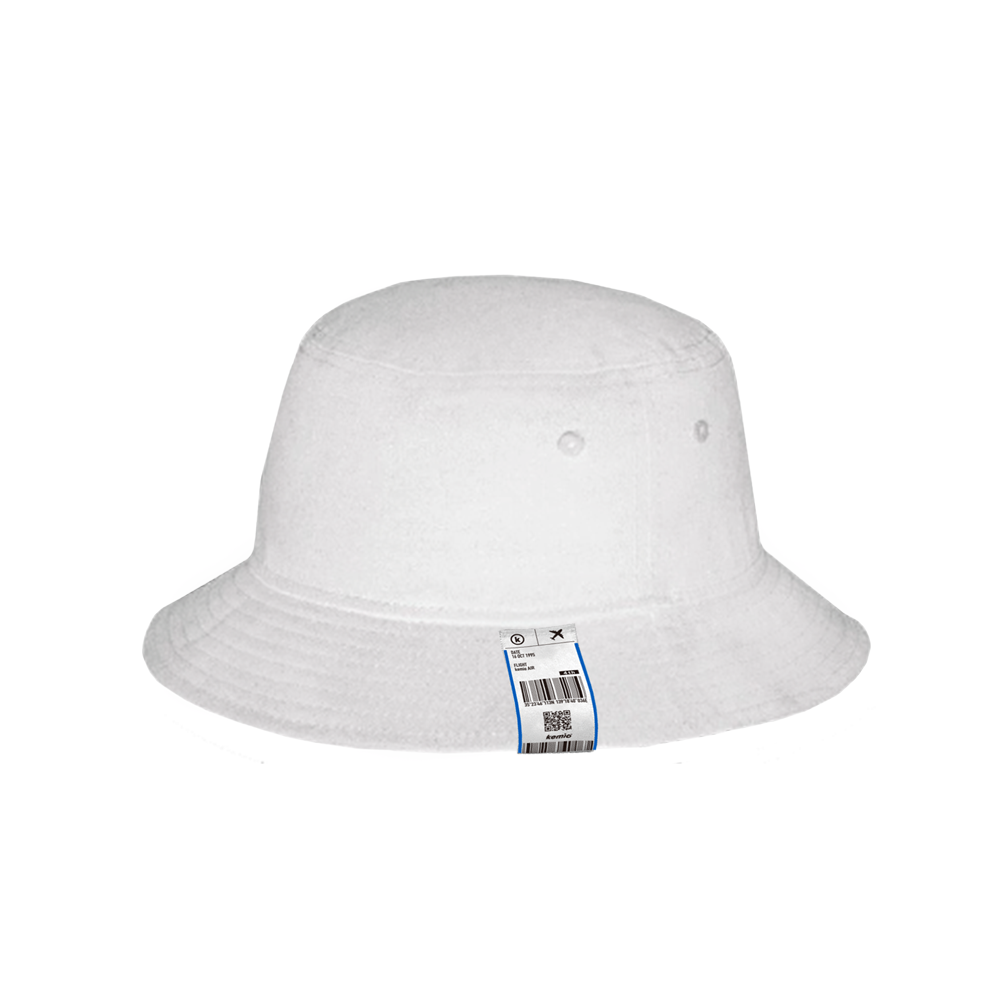 フライトチケットのデザインラベルが印象的なユニセックスのバケットハット。