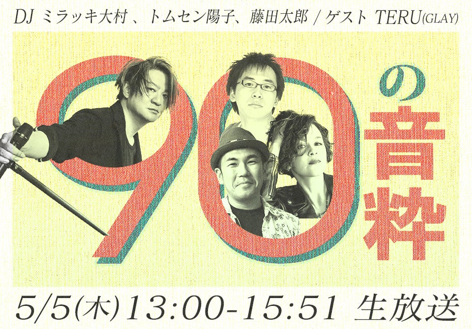 79-80年生まれ、青春ど真ん中の10代半ばに90年代音楽のかけ流し源泉にどっぷり浸かったDJミラッキ大村(月)、トムセン陽子(火)、藤田太郎(水)の同世代トリオが集結!90年代を熱く彩った邦楽の素晴らしさ、隠された魅力を、渾身の選曲と共に徹底分析&談義。