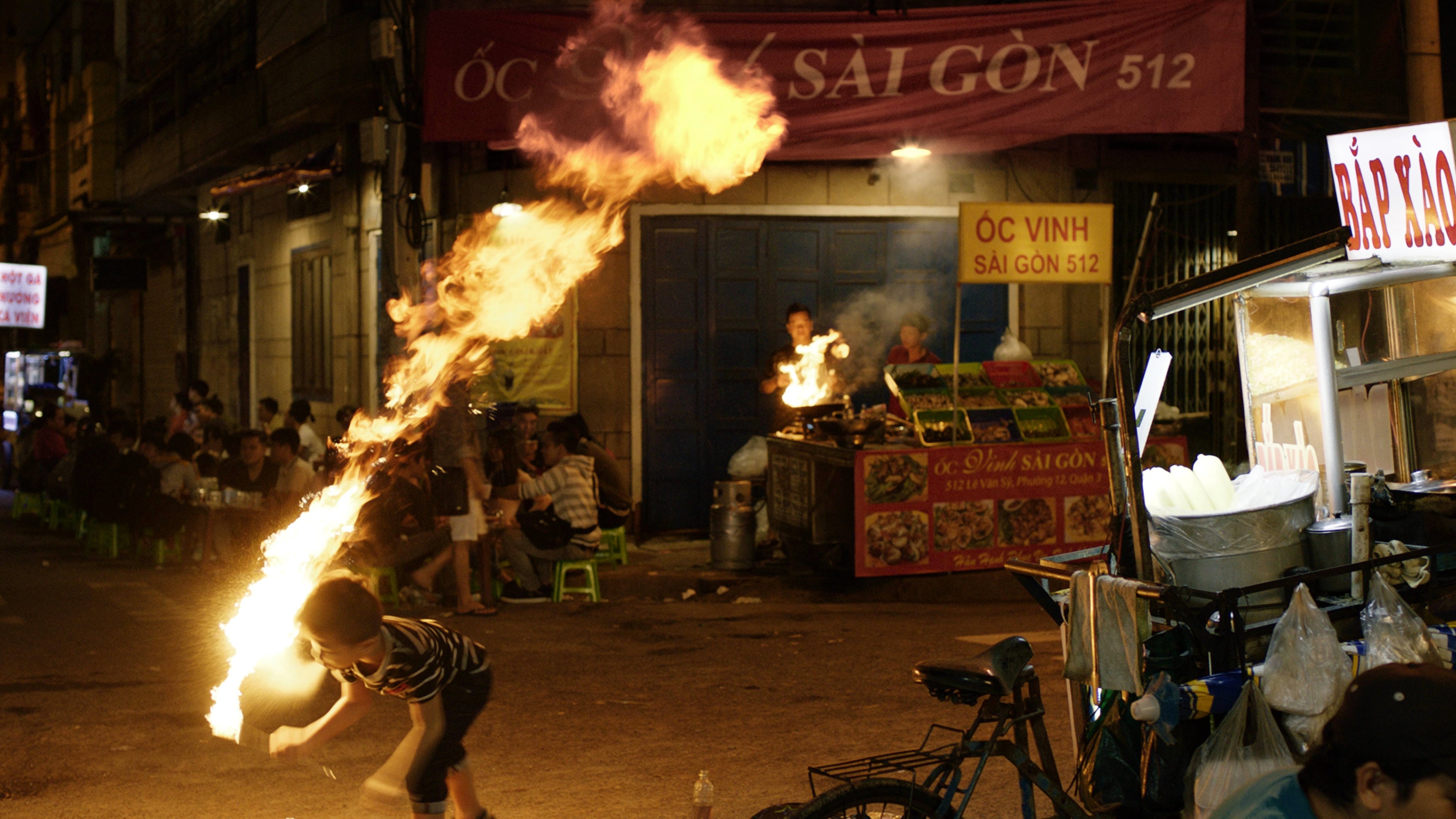 バイクが行き交うベトナムの夜を、なめらかに移動する13分ワンショットの長回しで撮影した作品。何の変哲もない街角で起こる「ありとあらゆる事」をじっと見つめるのは、透明人間か幽霊か、それとも――?映像に合わせて耳元で心地よく溶ける音響も要チェック。