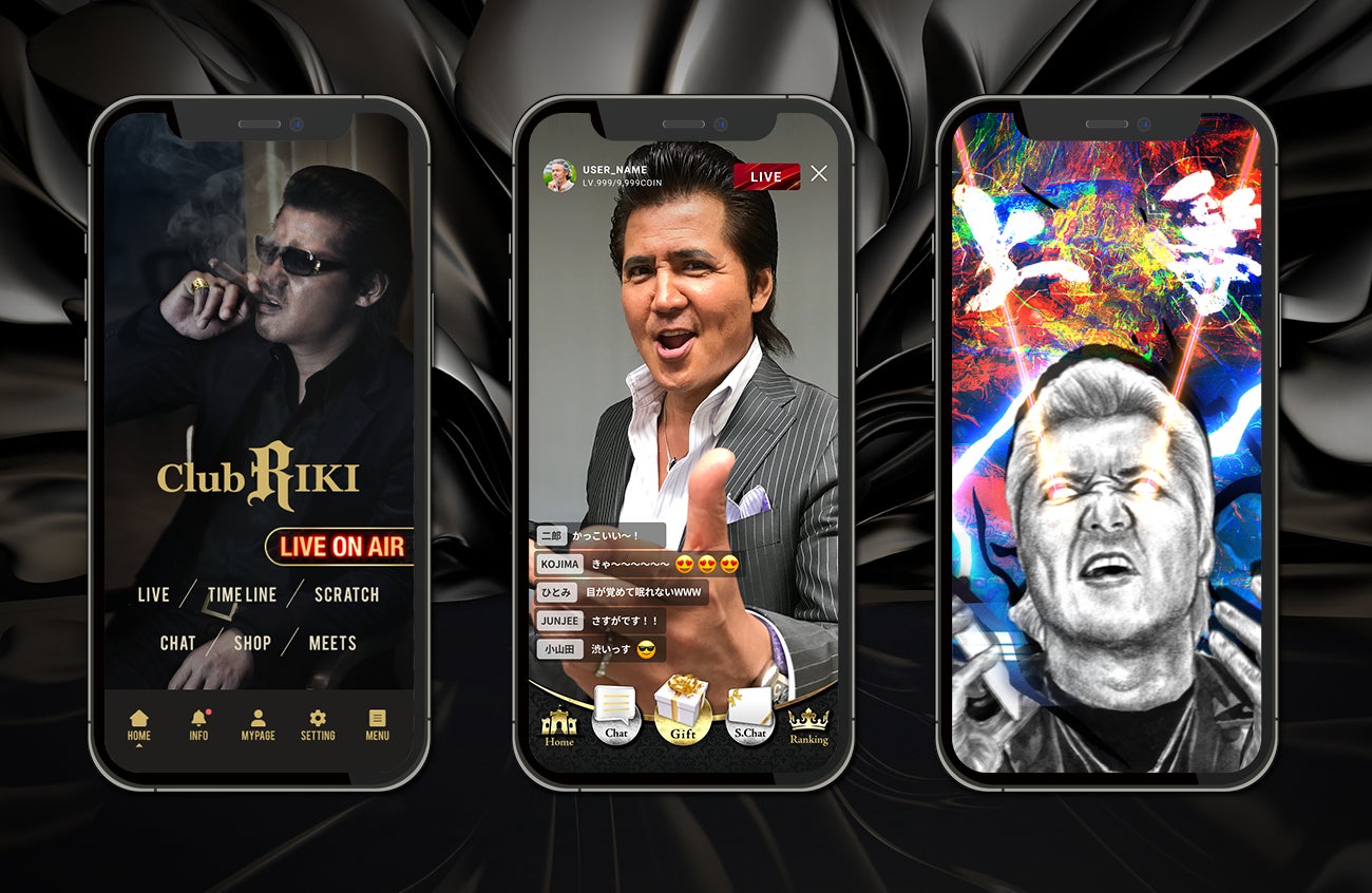 ファンオンリーのクローズドなライブ配信空間で視聴者の質問に答えたり、1on1のオンライン握手会を開催、双方向で楽しめるトークエンターティメントを提供します。他では見ることのできないフォトタイムラインや『Club RIKI』限定のプレミアムグッズの販売も予定しており、往年のファンから新しいファンの方まで竹内力と一緒に深く楽しめるアプリとなっています。