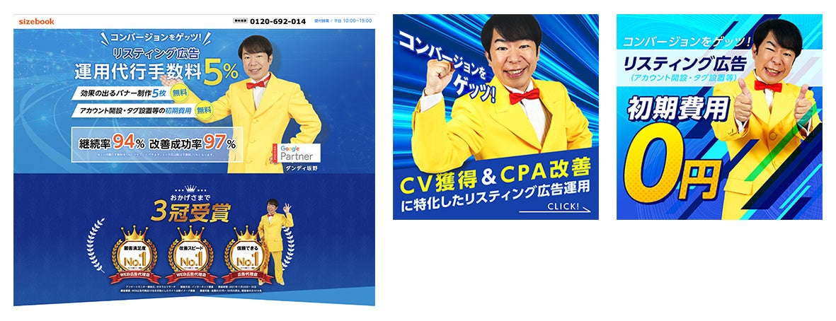 WEBコンサルティング会社の株式会社sizebookのWEBプロモーションにて、ダンディ坂野さんを起用いただきました。