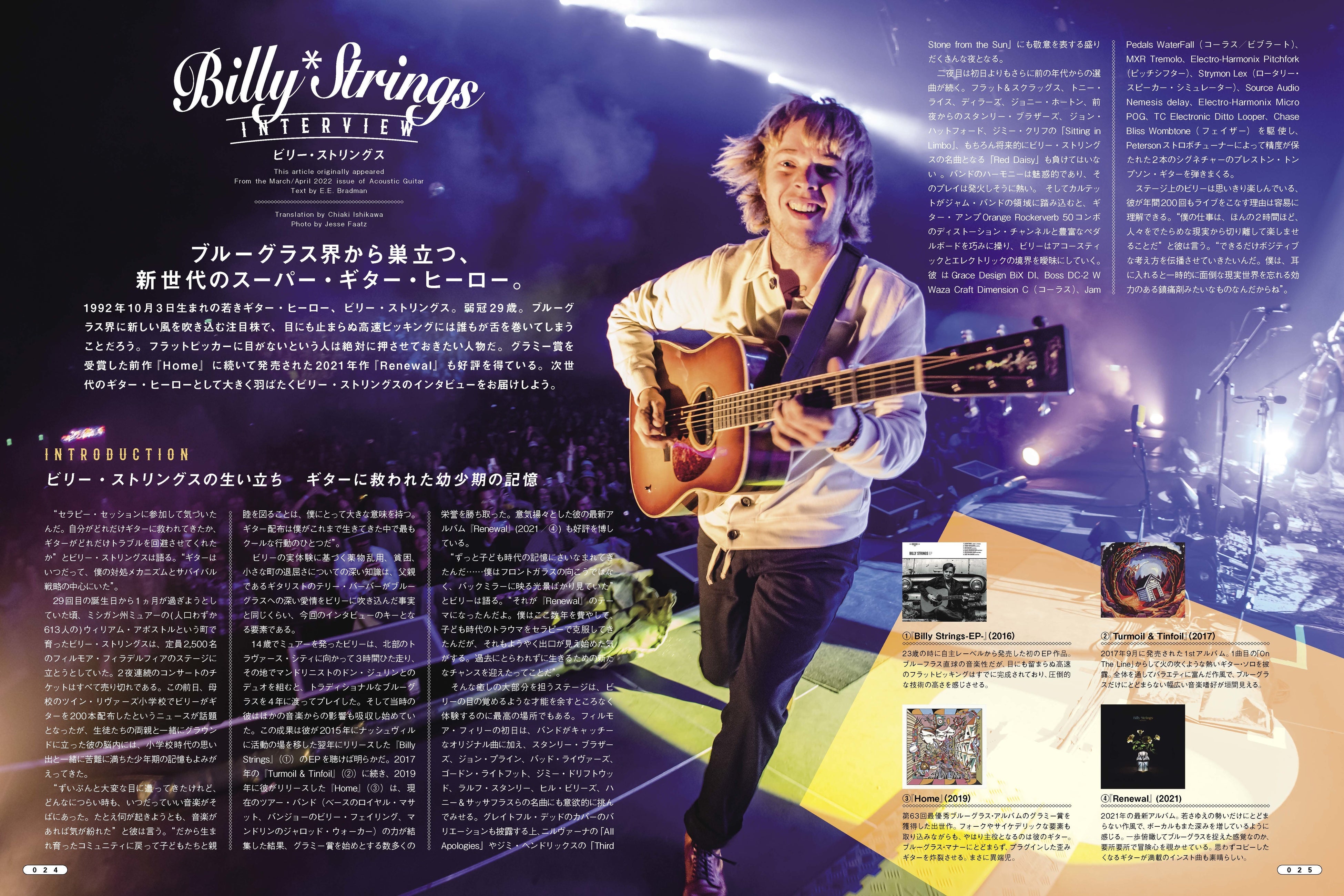 そのほか、ブルーグラス界を席巻する新時代のギター・ヒーロー=ビリー・ストリングスの最新インタビュー、60年代中期から70年代にかけてデヴィッド・クロスビー/スティーヴン・スティルス/グラハム・ナッシュ/ニール・ヤング/ジョニ・ミッチェル/ジャクソン・ブラウンなどが過ごしたと言われる伝説のローレル・キャニオンの特集、関口シンゴによるサウンドポート付きアコギの検証企画など、盛りだくさんの内容となっています。ぜひアコースティック・ギターを片手に楽しんでください。