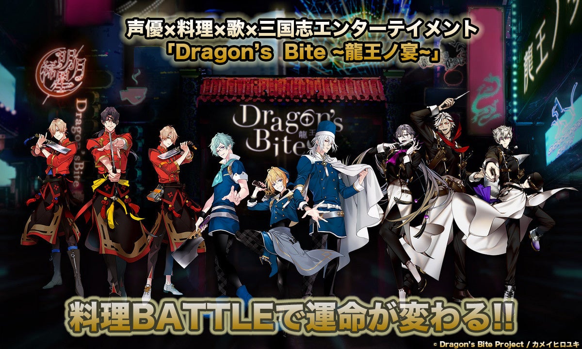 株式会社日テレWands(本社:東京都港区、代表取締役社長:鈴木重利、以下、日テレWands) は、古代中国より近未来・日本に呪いの力で蘇った三国志の英雄たちが、3vs3の料理バトルで自らの運命を変える、エンターテインメント・プロジェクト『Dragon’s Bite 〜龍王ノ宴〜』(以下、『ドラバイ』)にて 、1周年を記念した料理バトルを開催。