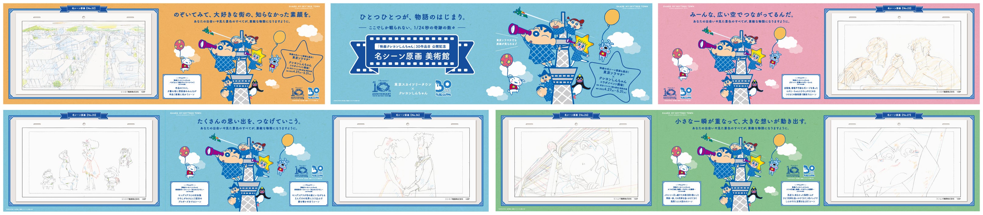 アニメ「クレヨンしんちゃん」放送開始30周年と、映画30作品目『映画クレヨンしんちゃん もののけニンジャ珍風伝』の公開を記念して、東京スカイツリータウン®内東京ソラマチ®にて、記念企画を実施します。映画作品の名シーンの原画を展示するほか、アニメ放送開始30周年記念グッズの販売、歴代映画ポスターの展示、フォトスポットパネルの設置等を行います。思い出される数々の名シーン、この機会にぜひご覧ください。