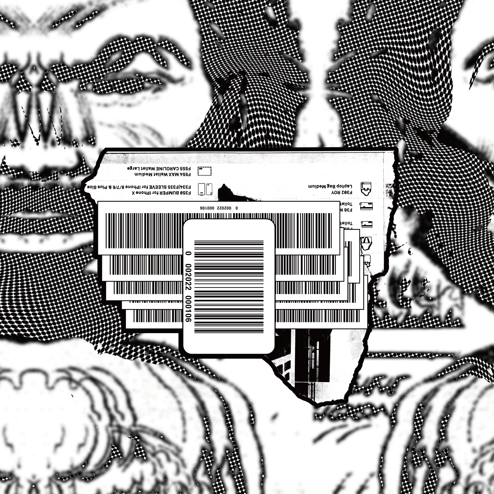 にいみひろきは多摩美術大学卒業後、アートディレクターとして広告や、音楽、ファッションのアートディレクションをやりつつ作家活動を開始。 にいみは今日の大量消費、とりわけ、そこにおけるクリエイティビティの消費をテーマにした平面作品を制作しています。 大量に生産され、供給され、そして時には廃棄される衣服や商品たちがある一方、現代はユーザーに消費を促すためにクリエイティブをも大量に生み出し、そして使い捨てています。シュヴィッタースのメルツ絵画などの先行例を参照しながら、そこに現代の産業と広告の関係性を持ち込み、消費されるクリエイティブたちを擁護するために描かれています。 社会から捨て去られた、あるいは時代によって使い古されたロゴやキャラクターを引用し、そして消費を象徴する最も現代的なアイコンとしてバーコードをフロントに登場させ、終わることのないクリエイティブの消費へのアイロニーとして描き出すことがにいみの作品のミッションであり、同時にこの時代に対するステートメントでもあります。