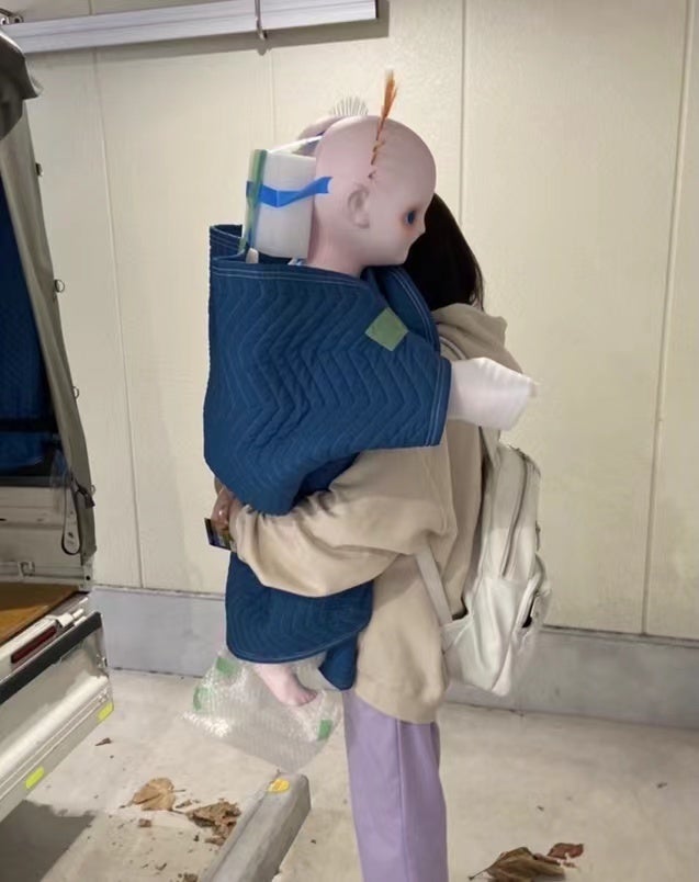 1999年大阪生まれ 2022年大阪芸術大学卒業。私の心象風景の中に存在する彫刻家Xの霊体がデュシャンの《自転車の車輪》的彫刻を2430年に数点制作した。私はその架空の彫刻作品をラウシェンバーグの《素描を消す》的絵画論を用いて描いている。彫刻家Xの霊体は「絵画からノイズミュージックが鳴り響き、蛍光インコの群がダンスを踊り始めた場合、鑑賞者はその心象風景から戻れない」と私に言い、スターバックスを出た。