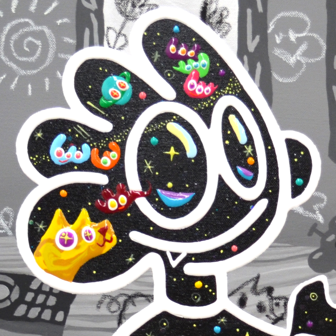 今までライブ会場や武道館、アリーナなどで描き続けていたYORKE.が今回はGalleryでの展示に挑戦。現代アート分野からは、品は主に架空の彫刻家の彫刻作品を絵画化する制作を行う玉住聖、神話、伝説、神秘学、日常の遊びと思考などから着想を得て玩具・立体・平面作品を制作している王之玉、消費を象徴する「バーコード」を登場させ、クリエイティブの過度消費をアイロニーとして描き出すにいみひろきが登場。