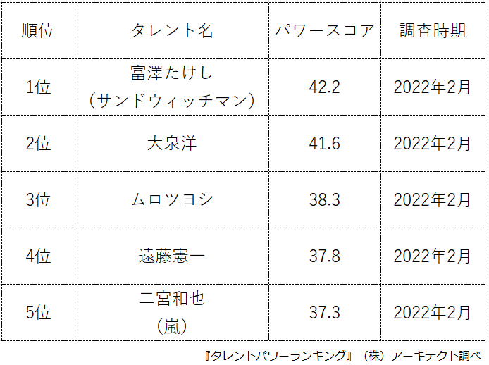 タレントパワーランキング担当:松岡