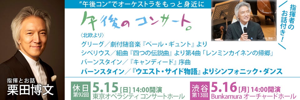 公益財団法人 東京フィルハーモニー交響楽団(東京都新宿区、理事長:三木谷浩史)は、2022年シーズンの「午後のコンサート」シリーズを人気の指揮者を迎え4月・5月に開幕いたします。