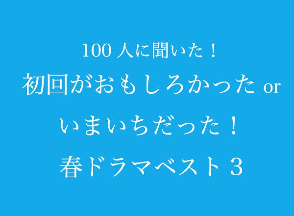 春ドラマの第一話放送がひととおり終わりました!初回を見た人は次回以降見続けるべきか迷うところ。そこでTVマガでは、100人のドラマ視聴者に「第一話がおもしろかった春ドラマ」と「第一話がいまいちだった春ドラマ」のついてアンケートをとりました。1位〜3位までのランキングと選んだ理由を紹介いたします。