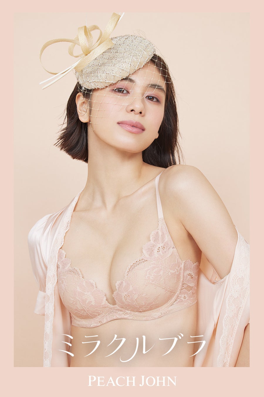 PEACH JOHNのミューズを務める佐藤晴美が「ミラクルブラ」を着用した、新ビジュアルにもご注目ください。本商品は、PEACH JOHN公式通販サイトと全国の店舗で購入可能です。