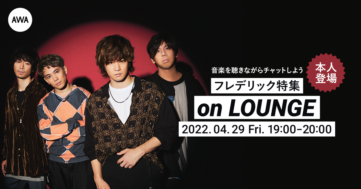 今回のイベントは、2022年6月29日(水)に国立代々木競技場第一体育館にて開催される「FREDERHYTHM ARENA 2022」に向けて勢いを増すフレデリックの、ゴールデンウィーク中のスペシャル企画『STORY OF ミュージックジャンキー~国立代々木競技場第一体育館~』の一環として開催されるもので、今回もメンバーがチャットに参加します。前半は今年の3月30日にリリースされた『フレデリズム3』の楽曲を中心にオンエアし、後半には春フェス直前ということで、ユーザーからの春フェスで聴きたい楽曲のリクエストも受け付けます。LOUNGEは、どなたでも参加することができ、AWAアプリを事前にダウンロードしていれば、リクエストやアーティストとの交流など、よりお楽しみいただけます。ぜひ、フレデリックのメンバー降臨LOUNGEをお楽しみください。