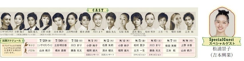 また、ニーナ・アナニアシヴィリが芸術監督を務めるジョージア国立バレエ団からはニノ・サマダシヴィリを初めてお招きします。昨年に引き続き、松浦景子(吉本興業)の出演も決定いたしました。