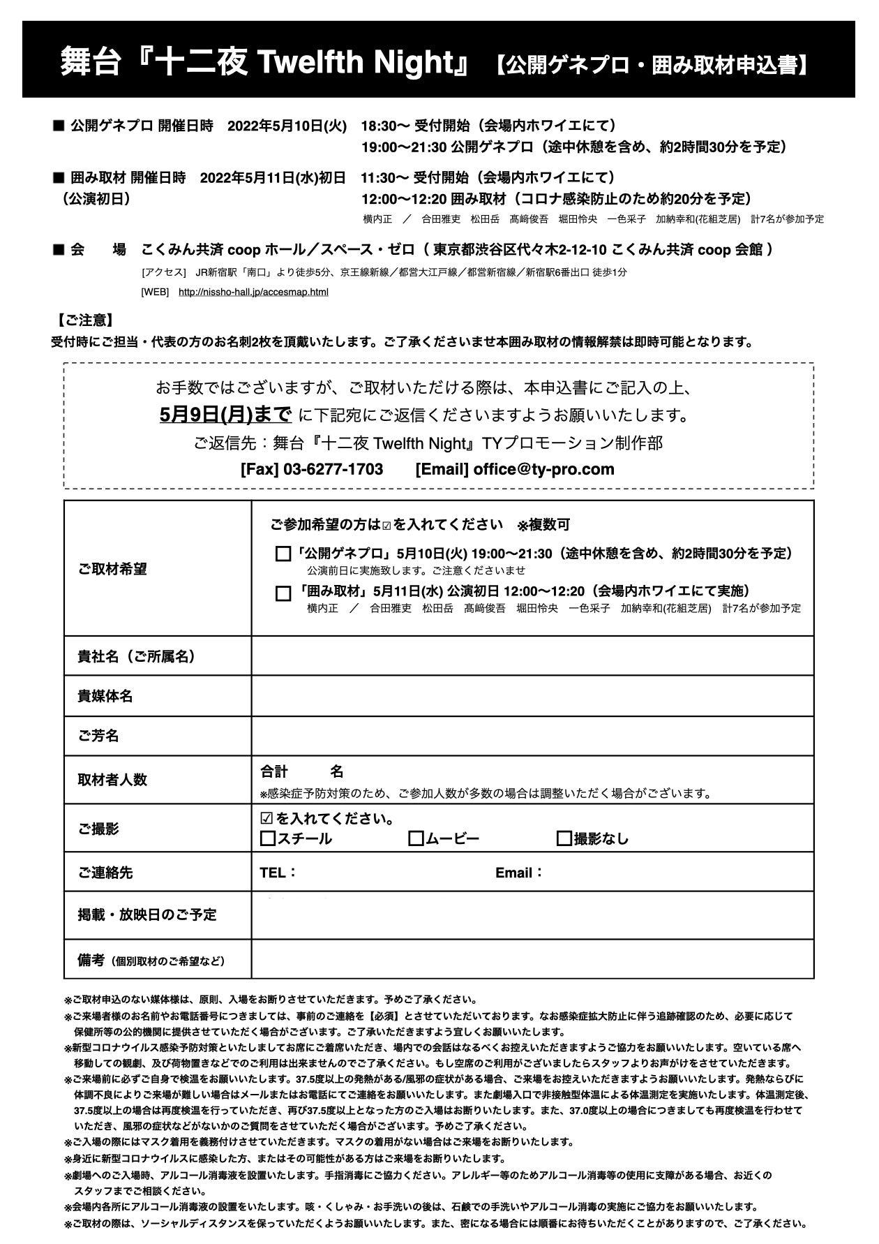 公開ゲネプロ参加・囲み取材参加につきまして…