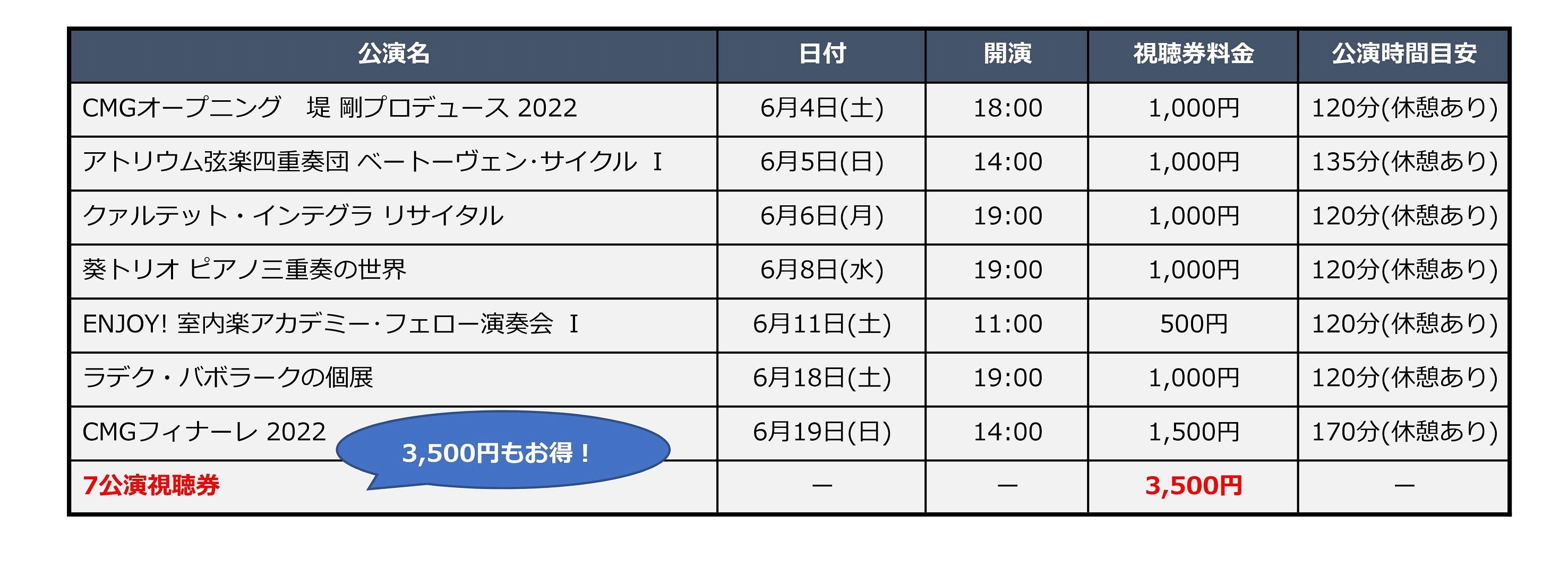 (サントリーホール・メンバーズ・クラブWEB/チケットぴあ https://suntoryhall.pia.jp/ticket/cmg2022.jsp)