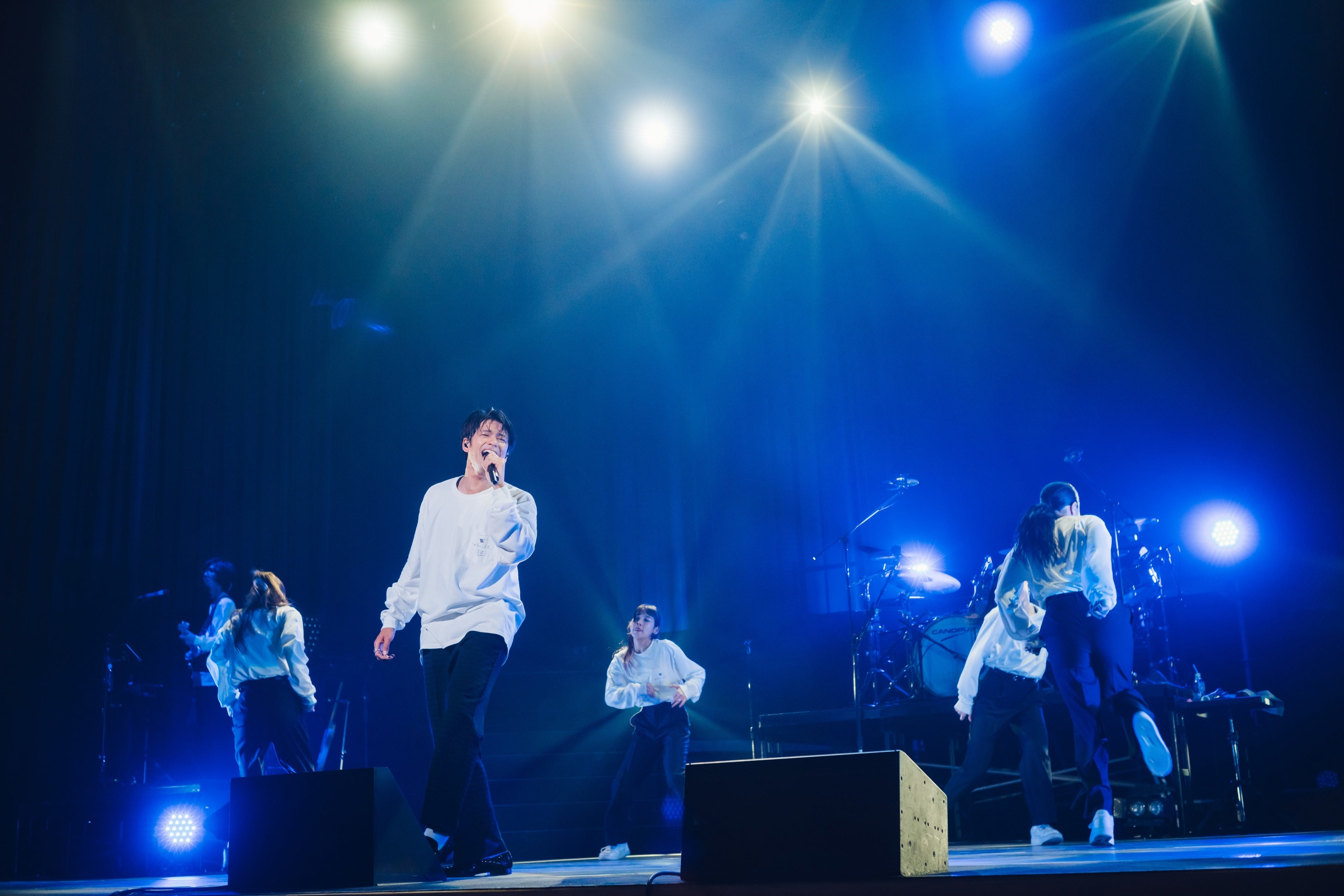 ここで、5月2日に配信されたばかりの新曲「My Place, Your Place」を大阪公演で初披露した際の話になり、「結構、評判が良くて。記録に残したいという声が多かったんだよね」と明かし、この曲のみで動画や写真の撮影を許可。驚きの声を上げた観客がスマホの準備をする間に「気持ちの中では思っていても口に出していうのはためらったりとか、長い付き合いの人だからこそ余計に言えないこともあると思う。でも、音楽だと、楽曲に背中を押されるように素直に言えるんですよね。僕はこの曲に乗せて、皆さんに思いを届けさせください」と語り、ファンへの気持ちも込めたストレートなラブソングを歌唱。メロラップやアカペラも含むミドルナンバーで、<僕を信じて>とパワフルな歌声でアピール。ファンクポップ「Me, Myself and I」では観客も一緒に踊り、空に虹をかけるように観客全員で大きく手を左右に振った「パレード – PARADE」で楽しく明るい空気と笑顔に満ち満ちた中で本編の幕は閉じた。