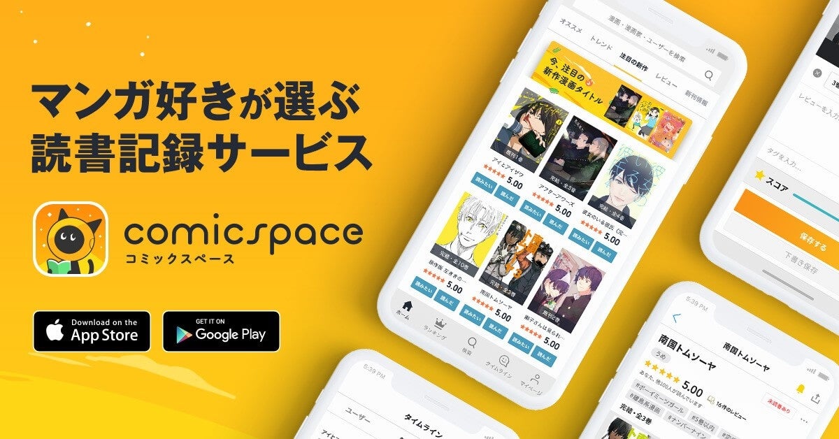 「comicspace(コミックスペース)」は、国内最大級の漫画データベースを持つ、漫画に特化した読書記録 / 読書管理サービスです。これまでに読んだり、今後読みたい漫画を記録しておけば、チェックした作品の新刊通知をお届け。漫画好きによるリアルな口コミや関連記事も集まっているから、自分の好みにぴったりの作品に出会えます。ランキングやおすすめ作品のレコメンド、試し読み、オリジナル本棚作り、ユーザー同士のコミュニケーションなど豊富な機能で、快適な漫画ライフをサポートします。