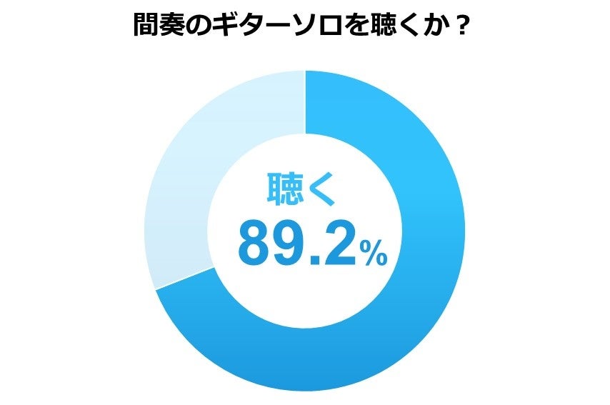今回の調査結果では89.2%のユーザーが「ギターソロを聴く」と回答しており、「若者はギターソロをスキップする」という話題と真逆の結果となりました。