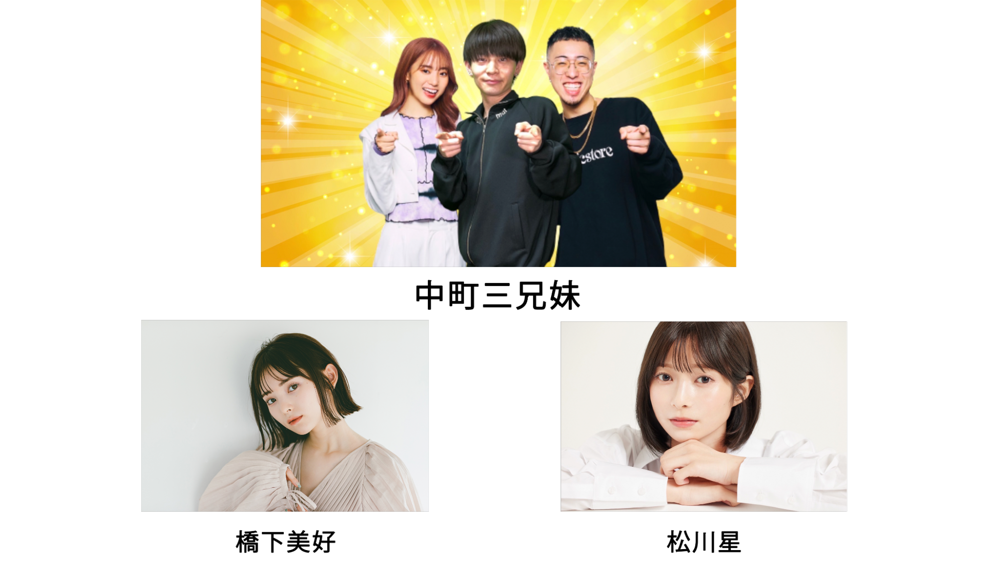ゲスト&インフルエンサーとして、YouTubeチャンネル登録者数248万人を誇るジュキヤと、同じくYouTubeチャンネル登録者数100万人超の中町兄妹による特別ユニット・中町三兄妹の出演が決定いたしました。