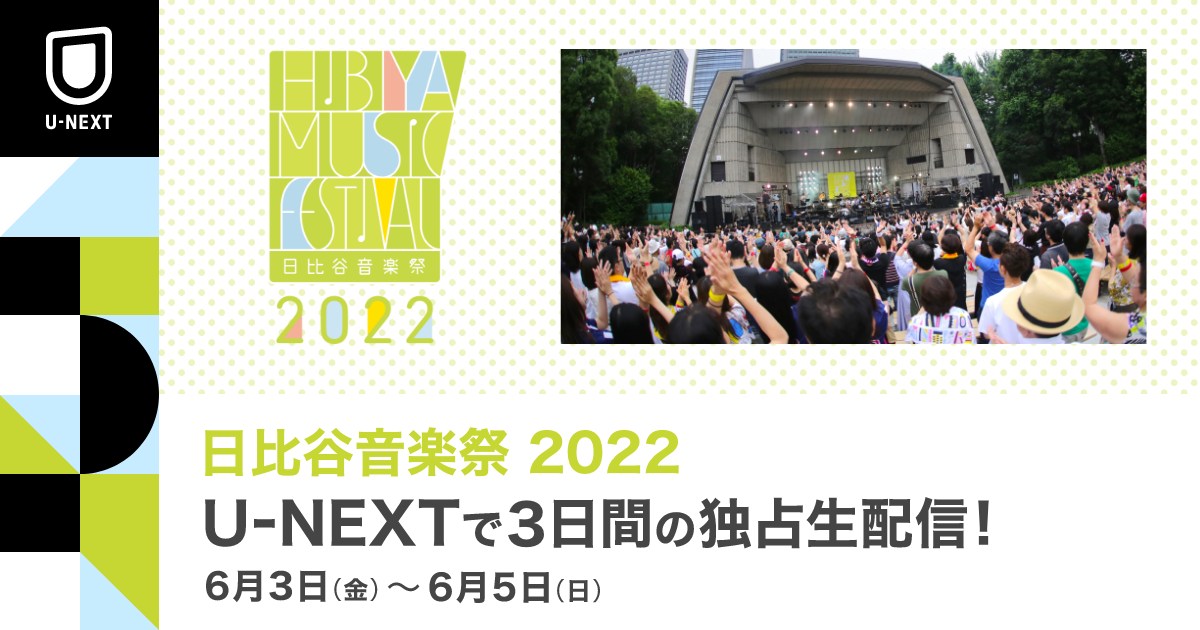 USEN-NEXT GROUPの株式会社U-NEXT(本社:東京都品川区、代表取締役社長:堤 天心)が運営する動画配信サービス「U-NEXT」は、2022年6月3日(金)、4日(土)、5日(日)の3日間にわたって開催される『日比谷音楽祭2022』を、マルチアングルで独占生配信いたします。