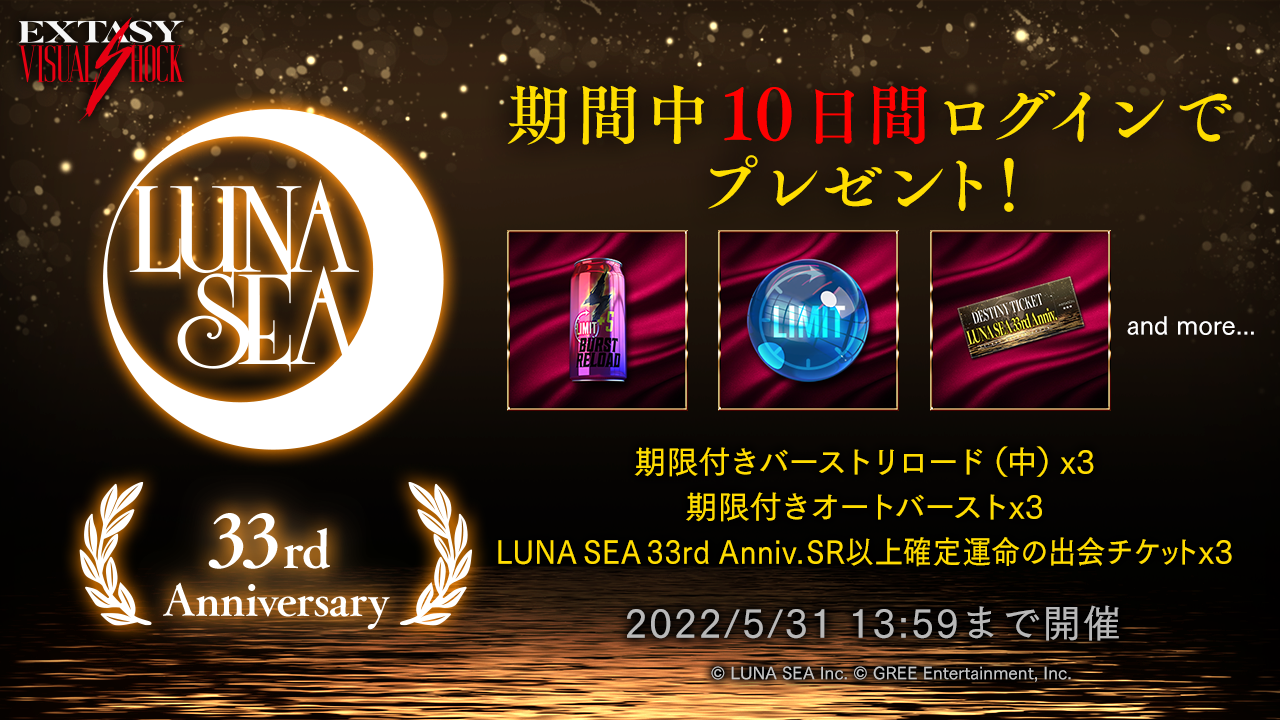 [LUNA SEA 33rd ログインボーナス 開催期間]