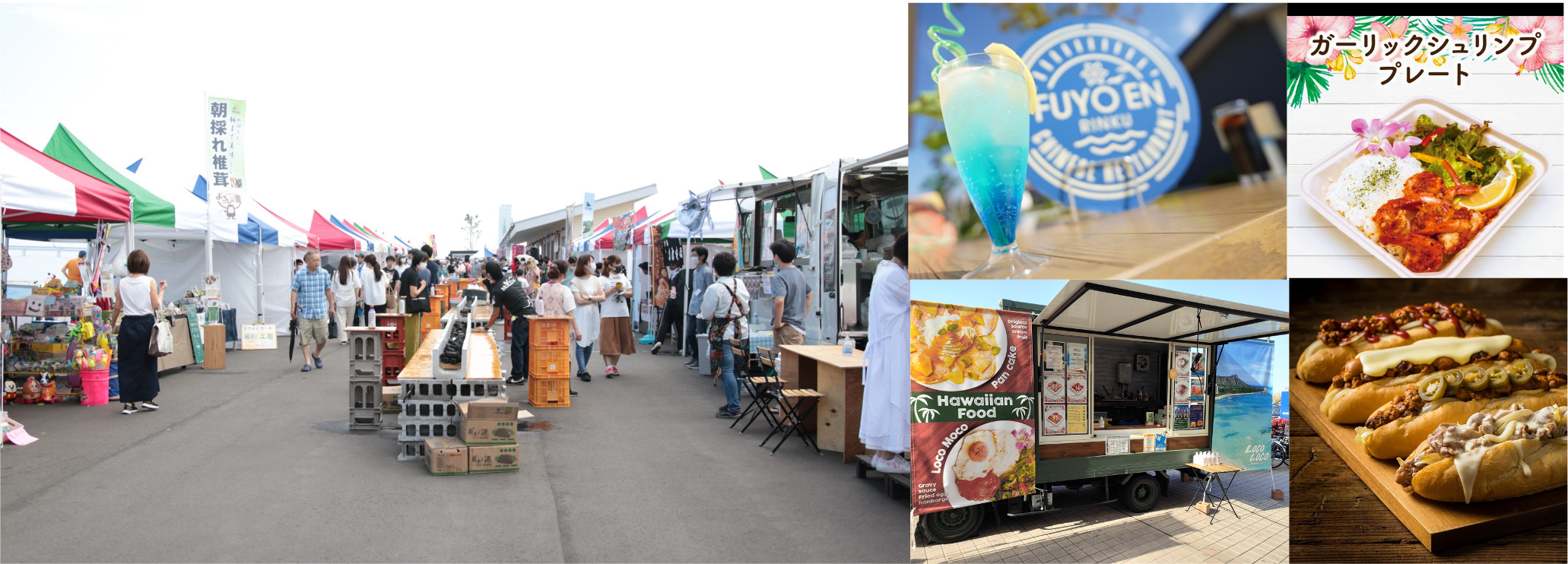 SDGsの一環である「つくる責任、つかう責任」に着目し、地産地消を促進すべく地元(泉州)の特産品を使用したハワイアンメニューを、7月17日限定でSENNAN LONG PARK内にある青空市場【海のマルシェ】にて提供予定。そして、ガーリックシュリンプ、パンケーキ、ハワイアンピザ、ハワイアンチーズステーキなどを取り揃えたキッチンカーもご用意。また、昨年に引き続き、会場となるSENNAN LONG PARK内の飲食店でも、期間中オリジナルのハワイアンメニューを展開します。