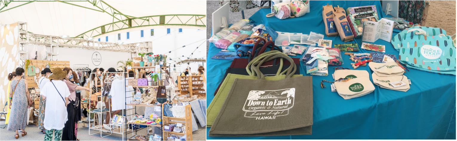 環境に配慮し、リサイクル繊維等で作られたハワイアングッズの展示・販売や、現地で買い付けたロコなハワイアングッズを販売するオフィシャルブースのほか、昨年大好評だった地球と優しく共存する為のエシカルファッションブランド「AESTASTERRA」セレクトによるポップアップショップには、海を感じるインテリアを取り扱う「Coastal Living」をはじめ、ビーチに合うバッグやポーチを取り揃えた「ALOHA SCALE」、自分だけのオリジナルアイテムが作成できる「ME-Q」に加え、約2週間で消える100%植物染料のタトゥーを扱う「Jagua tattoo NOAH」が参加するほか、地元クラフトショップ等の出店も予定しております。