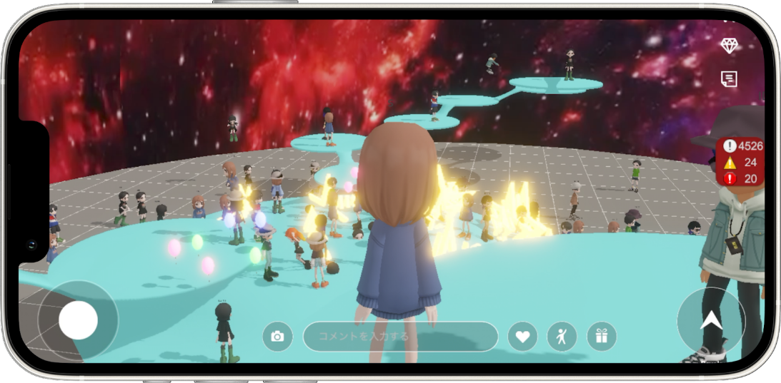 ライブステージでパフォーマーの世界観を体感できる臨場感あふれるバーチャルライブをお楽しみください。エフェクトやリアクションを使えば、ライブをさらに盛り上げることができます。