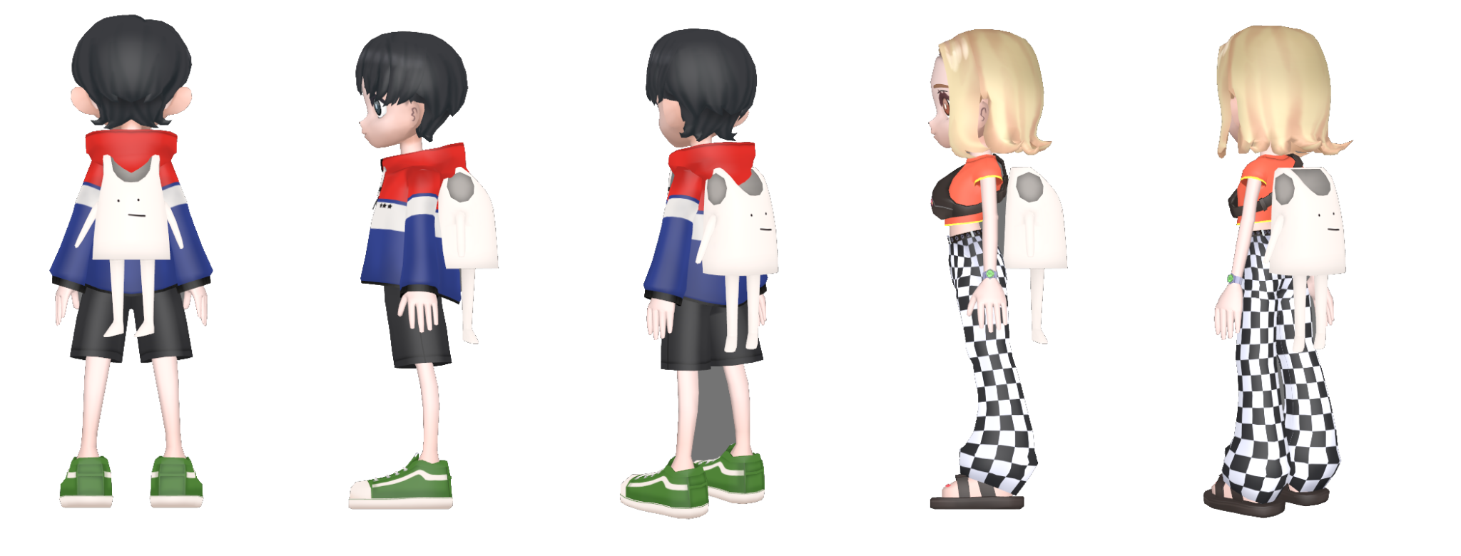 好きなコーディネートが決まったら、アバター同⼠でチャットによるリアルタイムな交流を楽しめます。グループになればボイスチャットでおしゃべりもでき、さらに充実したバーチャル空間に。