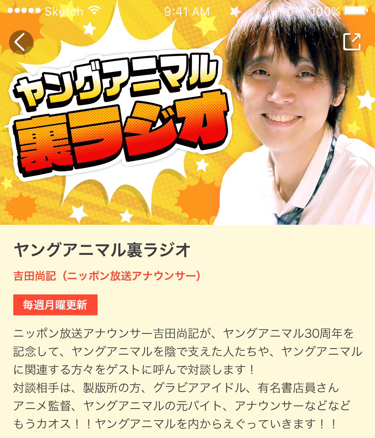 「裏ラジオ」ですので…漫画家の方々ではなく、製版所の方や書店員さん、ヤングアニマルの元アルバイトさんなど超カオスな面々! まさに裏側から見た、読者の皆さんが見たことがないヤングアニマルを語っていただきます!! 毎週・金曜日/土曜日0:00更新、アプリ「マンガPark」で聴けます。さらに、ポッドキャストで順次配信予定です。