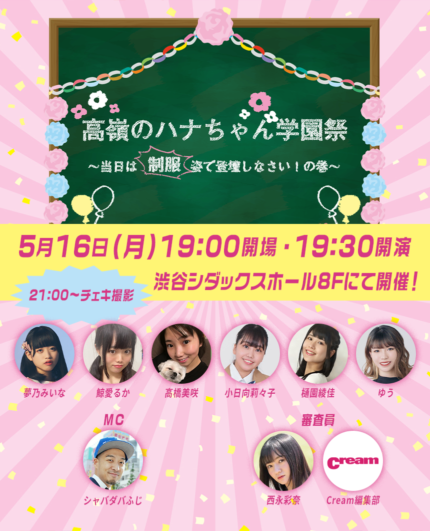 株式会社マシェバラ(本社:東京都渋谷区 URL:https://www.mache.tv/)が運営するネット配信サービス「マシェバラ」は5月16日(月)、「高嶺のハナちゃん学園祭」を開催いたします(会場:東京渋谷区 シダックスカルチャーホール)。