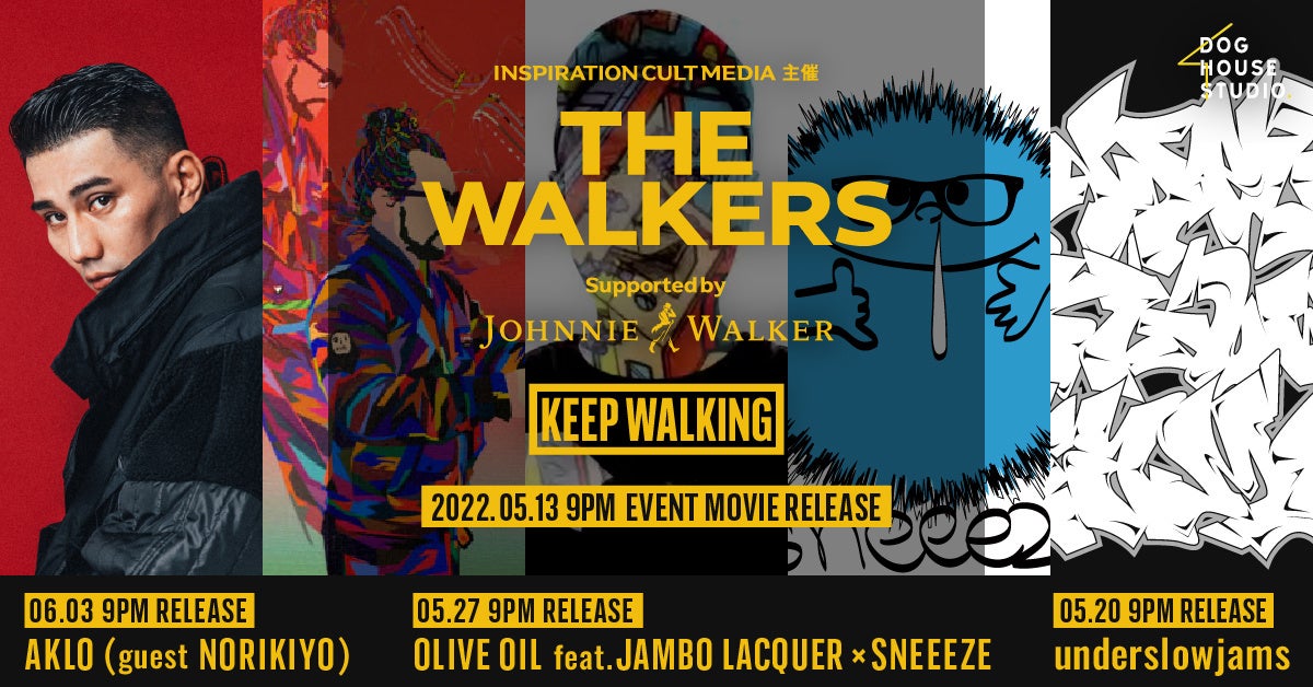 オーバーグラウンドからアンダーグラウンドまで、ストリートで活躍する、ありとあらゆるキーパーソンたちとつくるYouTubeチャンネル『INSPIRATION CULT MEDIA』主催のLive収録パーティー“THE WALKERS Supported by JOHNNIE WALKER”が東京・渋谷を象徴するクラブ『SOUND MUSEUM VISION』にて開催され、収録映像を5月13日(金)21:00に公開いたします。