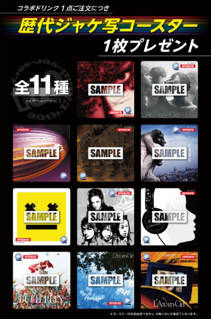 株式会社エクシングの子会社で、全国にカラオケ店舗を展開する株式会社スタンダード(本社:東京都港区、代表取締役社長:米田洋一)は、2022年5月18日(水)から2022年6月16日(木)までの期間中、「L’Arc〜en〜Ciel 30th L’Anniversary×JOYSOUND直営店コラボキャンペーン」と題し、JOYSOUND直営店全店舗にて、リマスターBOX発売を記念して歴代アルバムジャケットデザインのオリジナルコースター付きコラボドリンクを展開します。