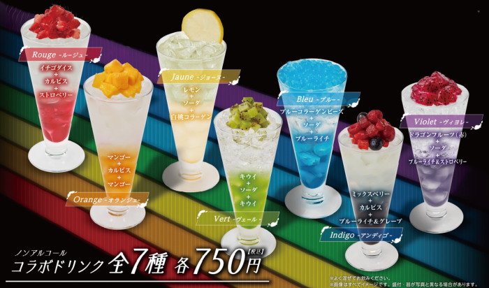 コラボドリンクには、「L’Arc〜en〜Ciel」=虹の色(7色)で揃えた全7種【各¥750 (tax in)】をご用意します。注文特典として、コラボドリンク1品ご注文につき、リマスターBOX発売を記念して歴代アルバムジャケットデザインのオリジナルコースター(全11種)の中からランダムで1枚プレゼントします。また、5月27日より、「L’Arc〜en〜Ciel 30th L’Anniversary」オリジナルケーキも30店舗、300個限定で同時販売いたします。キャンドルや、プレート、ピックなど、飾りはお持ち込み可能!※5日前までに要予約