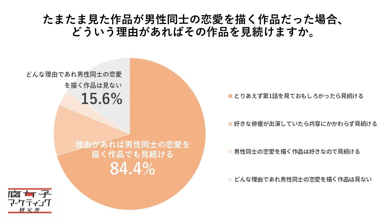 「どんな理由であれ男性同士の恋愛を描く作品は見ない」と回答をしたのは全体の15.6%にとどまりました。