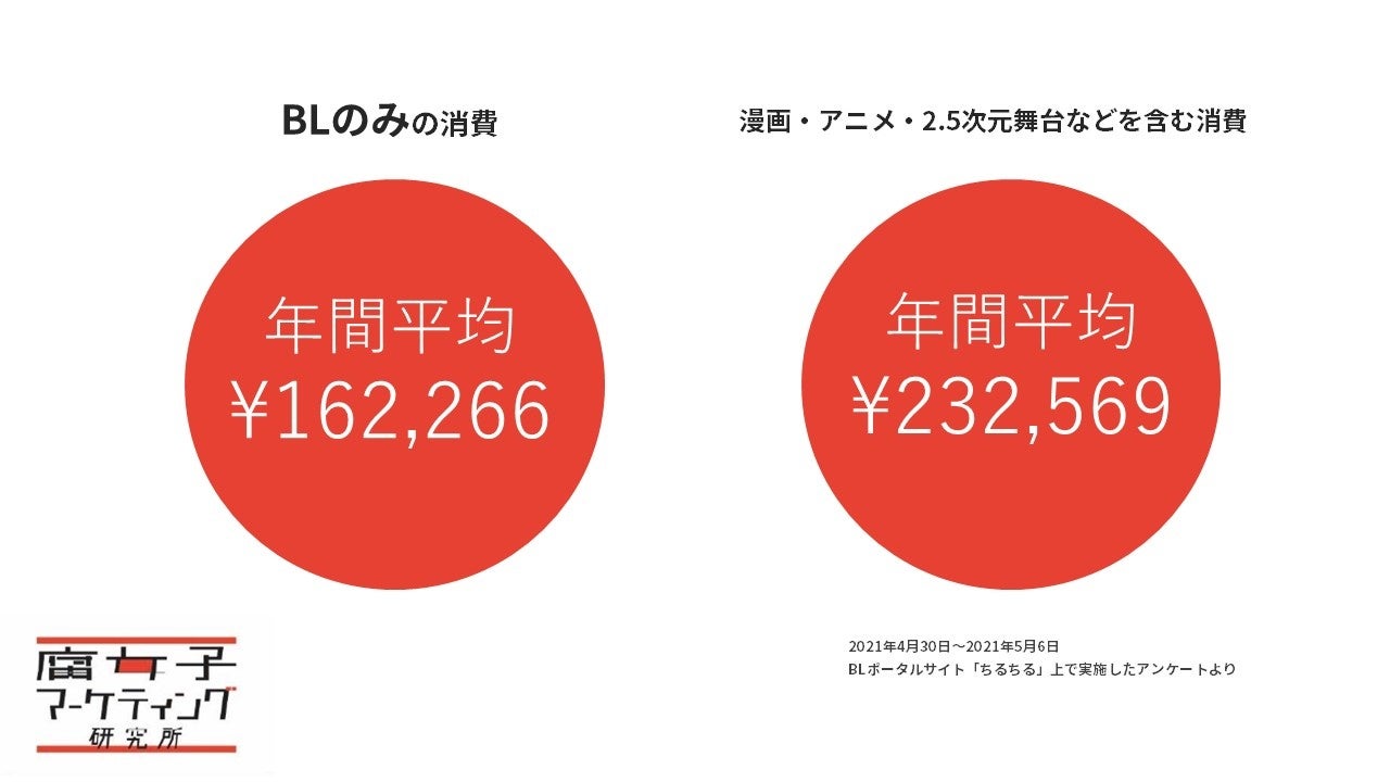 またBL以外の漫画やアニメ、2.5次元舞台などのコンテンツも合わせると、その消費は年間平均232,569円にものぼりました。