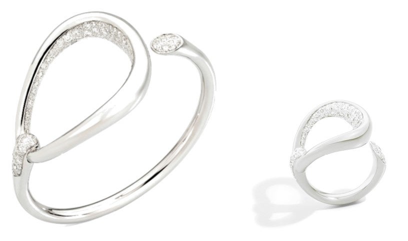 「ファンティーナ」:K18WG×ダイヤモンド ブレスレット 2,112,000円、リング 770,000円(税込)