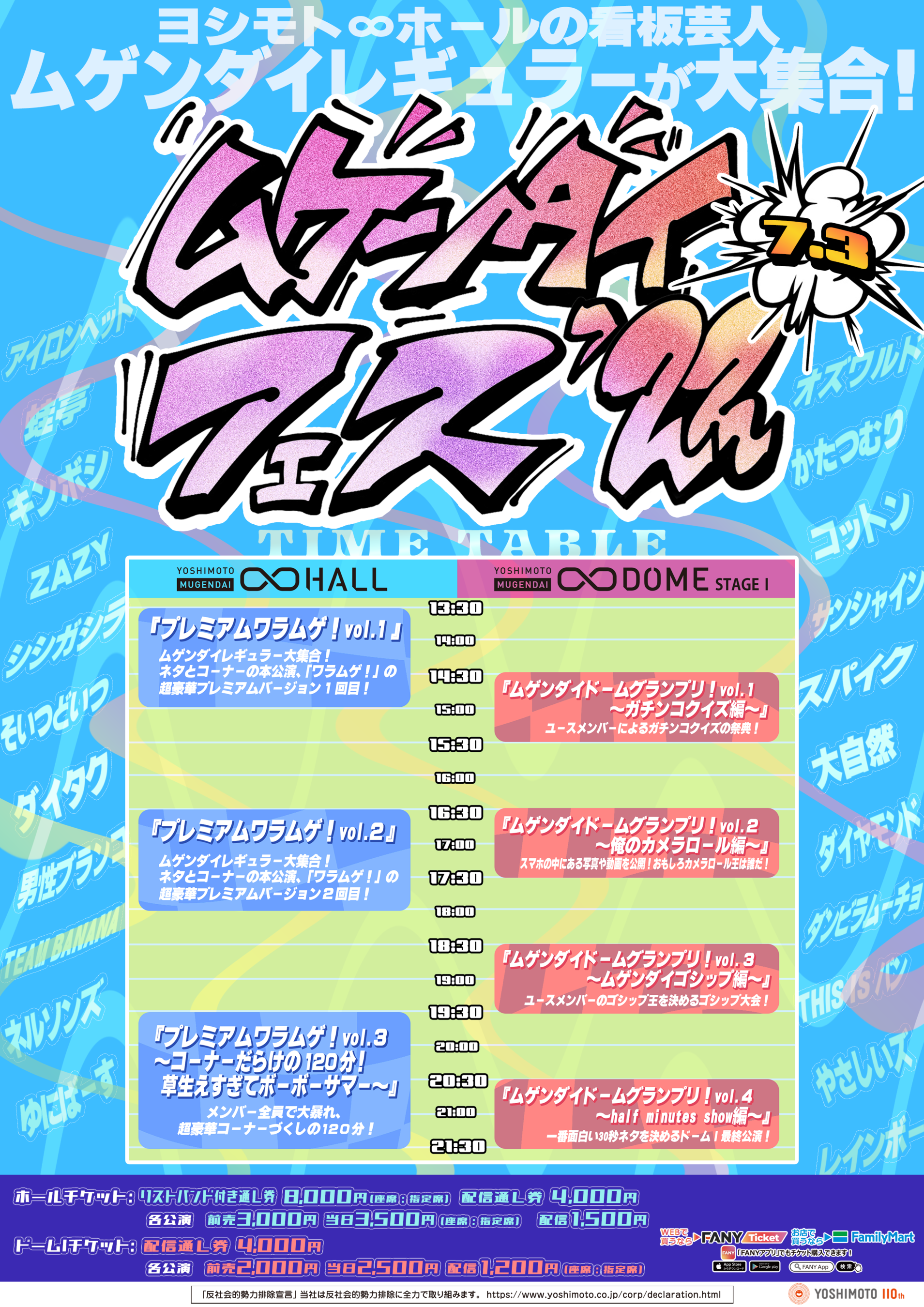 この度、東京・渋谷からお笑いのトレンドを発信する劇場「ヨシモト∞ホール」は、2022年7月3日(日)に、『ムゲンダイフェス’22』を初開催いたします。
