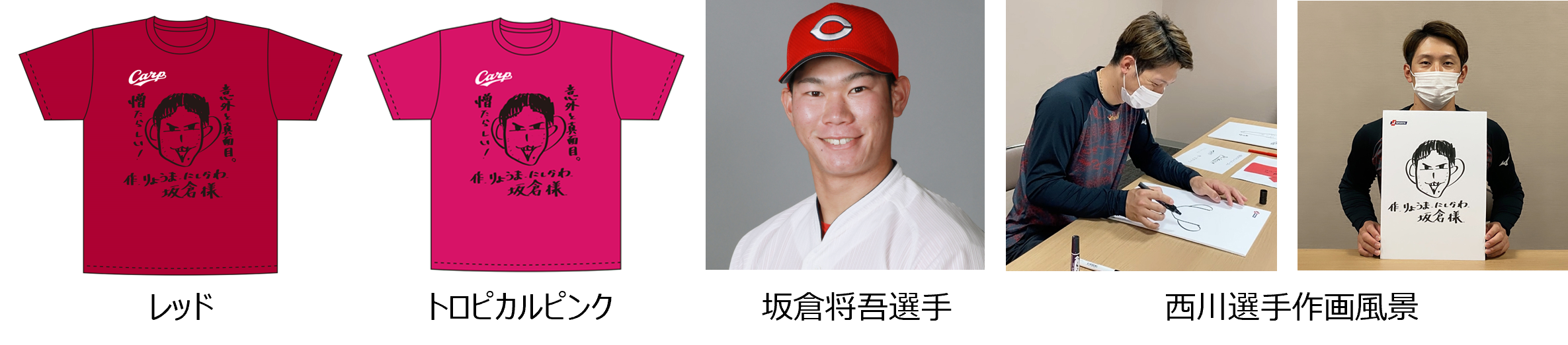 「広島東洋カープ×J SPORTS 選手デザインTシャツ」 レッド、トロピカルピンク ※オリジナルステッカー付